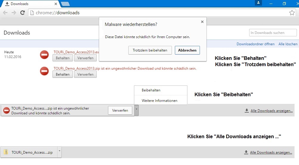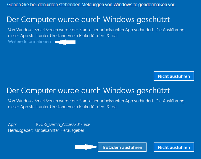 (z.B. TOURi.exe) als Bedrohung und blockieren bereits ihre